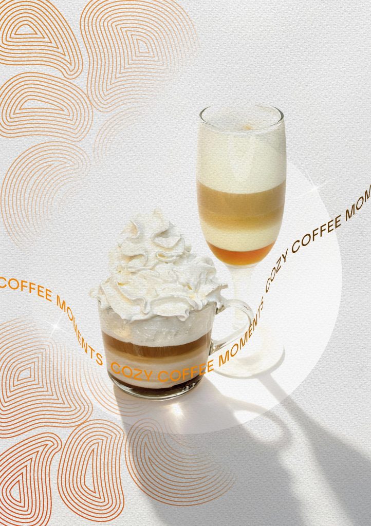 (espresso, mleko, toping od čokolade, pistać toping, kadaif, šlag)